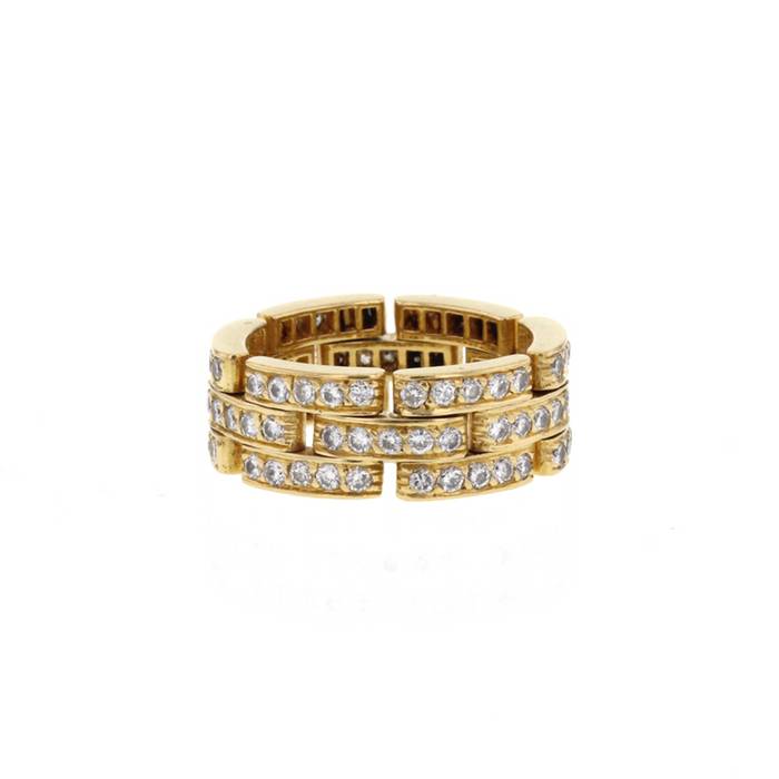 Magnificent flexible ring of the collection "Maillon Panthère" in yellow gold, completely set with brilliant cut diamonds, including one elegant geometric hemstitched link.
