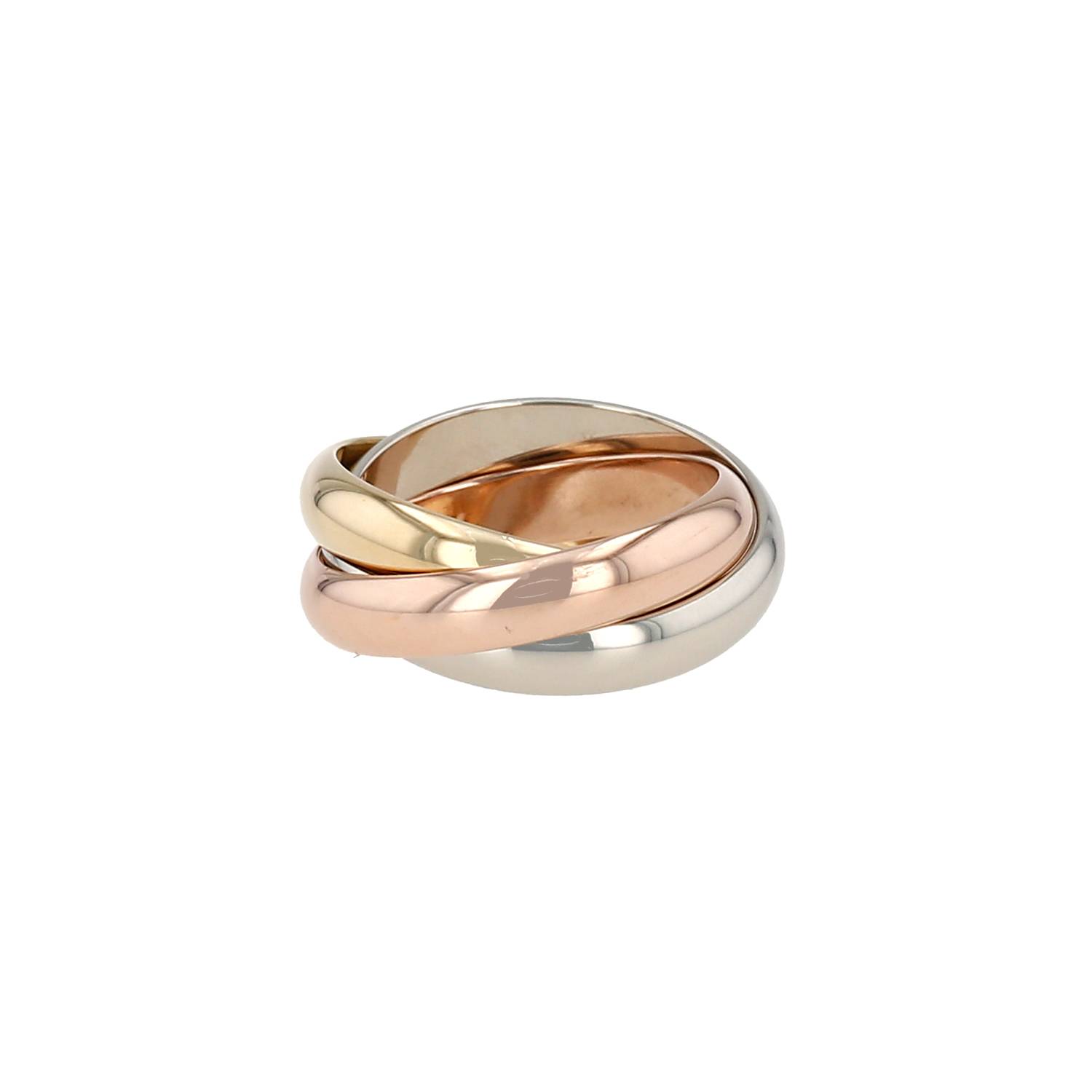 Timeless Cartier Trinity medium model ring in 3 golds, composed of of a series of elegant interwoven rings in yellow gold, in pink gold and in white gold.