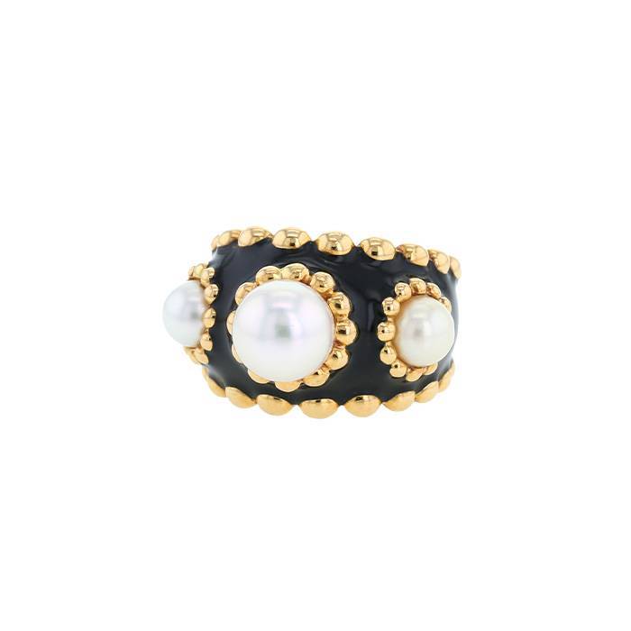 Chanel 3 symboles ring in yellow gold, pearls and lacquer Collector Square Ref: 40 01 80