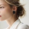 Chanel Camelia large model earrings for non pierced ears in yellow gold and onyx Collector Square Ref: 41 96 47