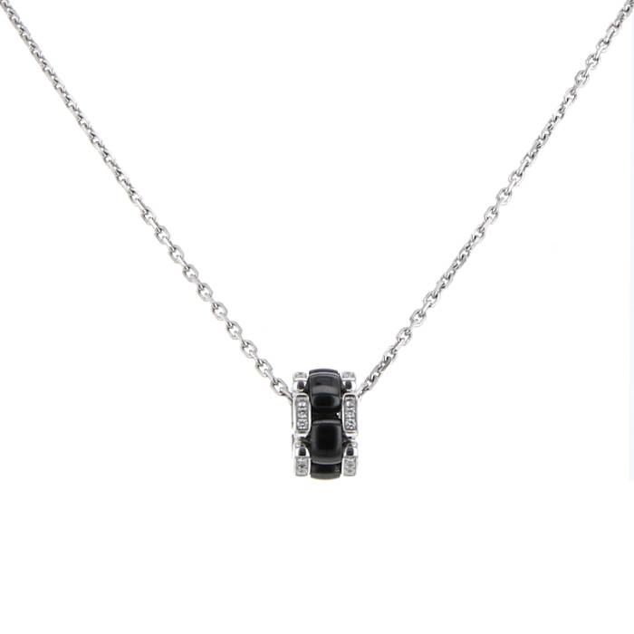 Charming Chanel Ultra necklace in white gold, in black ceramic, and in diamonds, composed of an alternating of delicate dome-shaped links in black ceramic, enhanced with one very beautiful smooth setting white gold delicately set with brilliant cut diamonds, hold by one beautiful white gold chain.