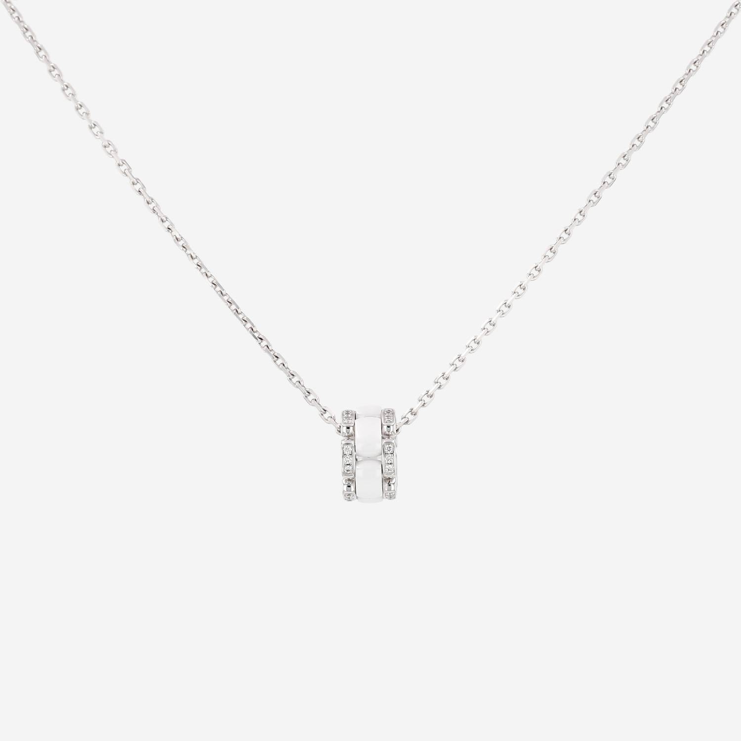 Flexible Chanel Ultra pendant in white gold, in ceramic white, and in diamonds, composed of an alternating of delicate dome-shaped links white in ceramic, enhanced of very beautiful links in white gold carefully set with of brilliant cut diamonds, with one thin in white gold chain.
