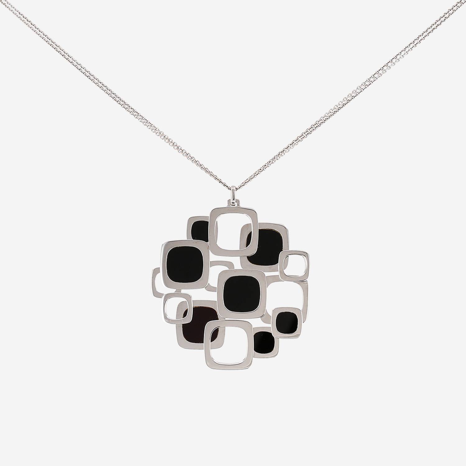 Dinh Van Impressions necklace in white gold and onyx, composed of an overlapping of lovely square patterns in white gold partially set with of a onyx, hold by one beautiful double white gold chain.