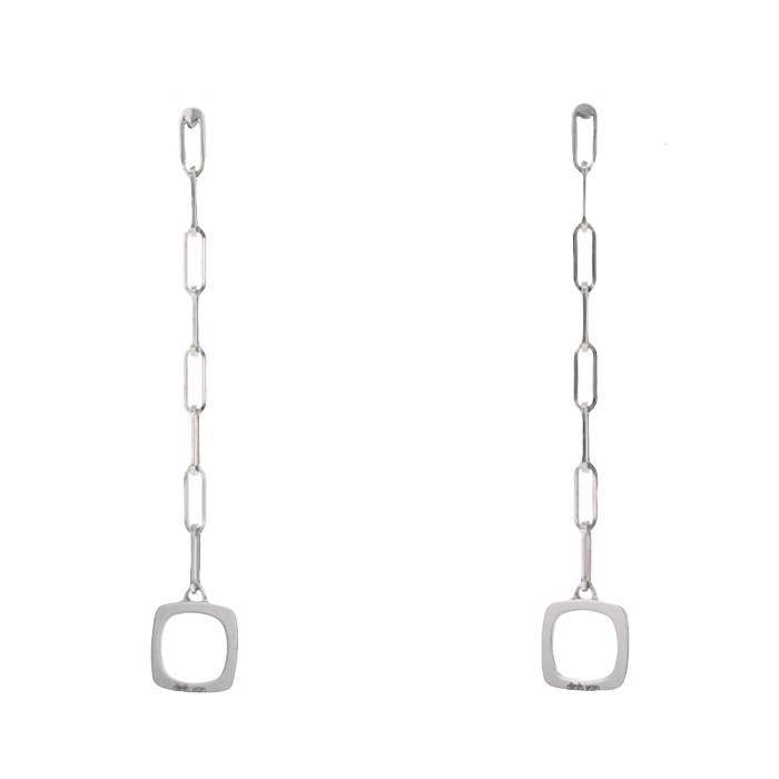 Superb pendants earrings in white gold, composed of one thin chain, enhanced by one elegant hemstitched disc.
