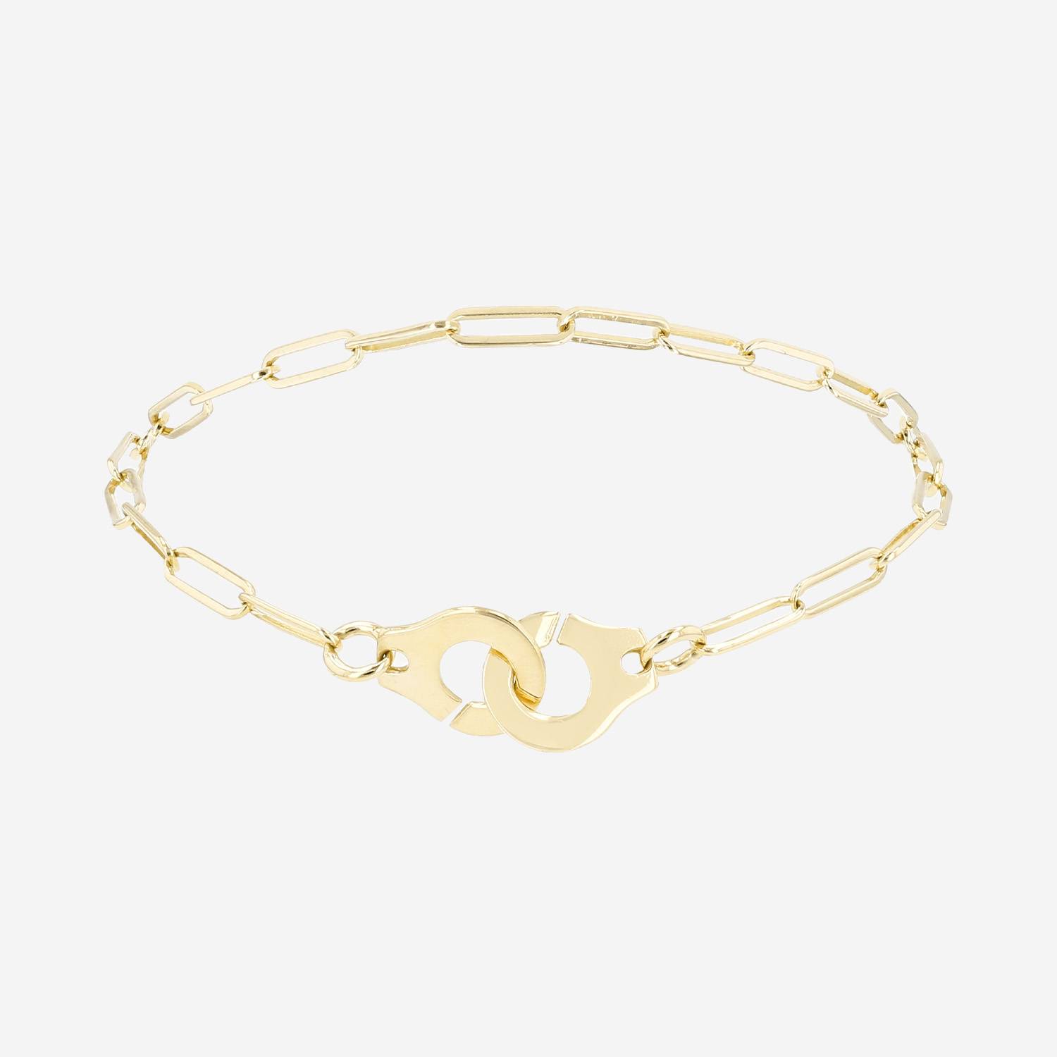 Dinh Van Menottes R10 bracelet in yellow gold, including one interwoven pair of handcuffs in yellow gold, hold by one in yellow gold chain.