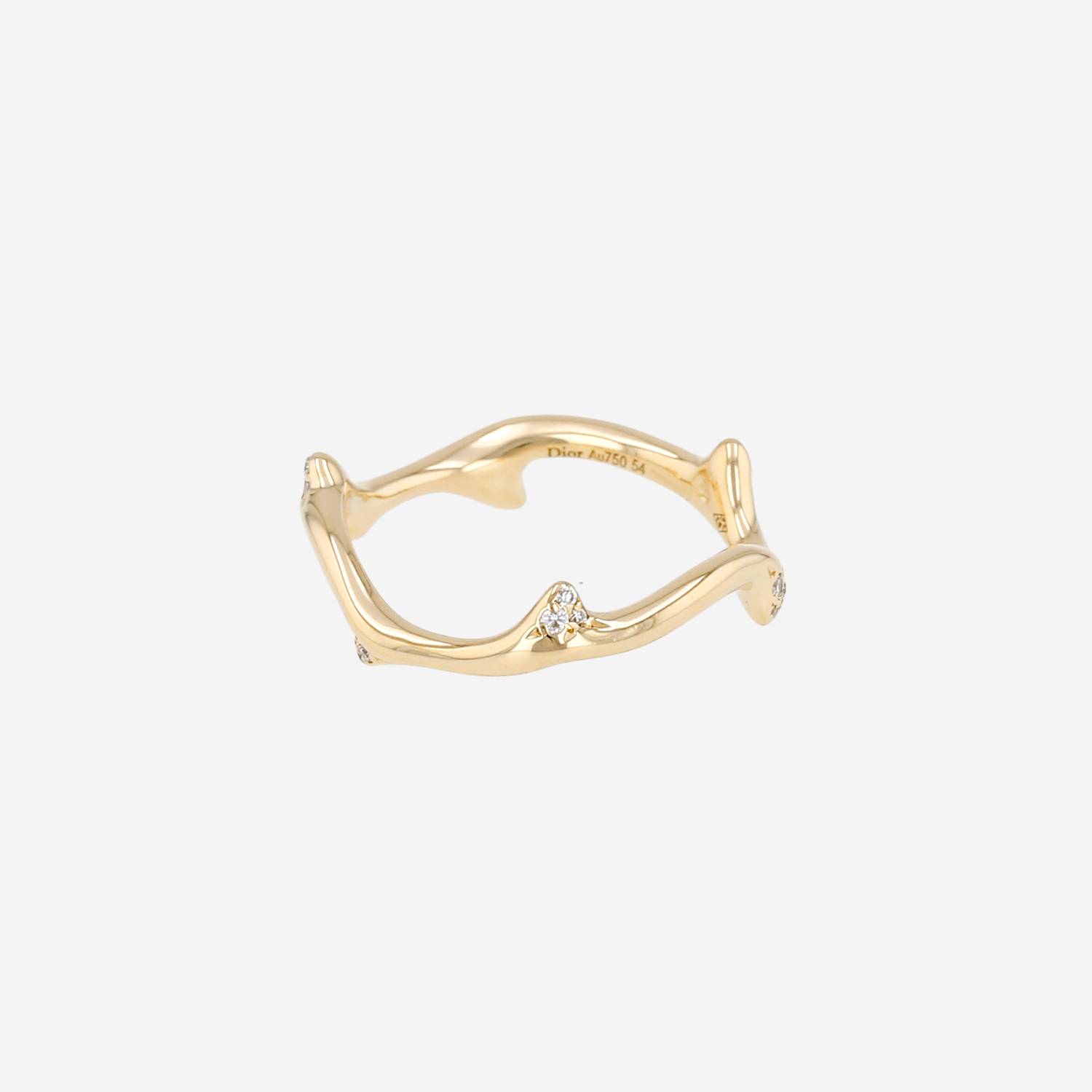 Lovely Dior Bois de Rose ring in yellow gold and diamonds, composed of one delicate wavy ring in yellow gold delicately set with of brilliant cut diamonds about 0.10 carat.