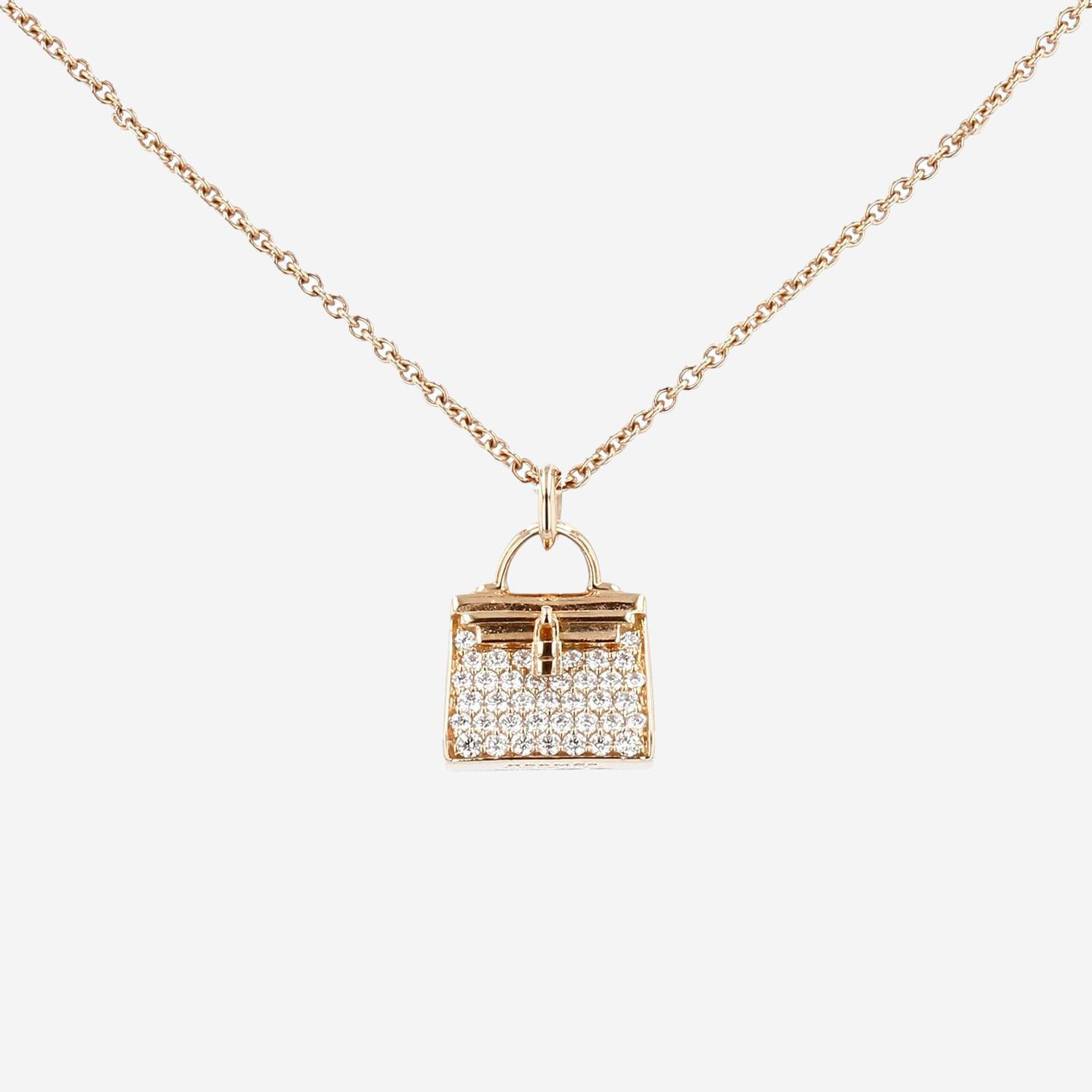 Hermès Amulettes Kelly necklace in pink gold and diamonds, composed of one pendant in pink gold delicately set with of brilliant cut diamonds, hold by one in pink gold chain.