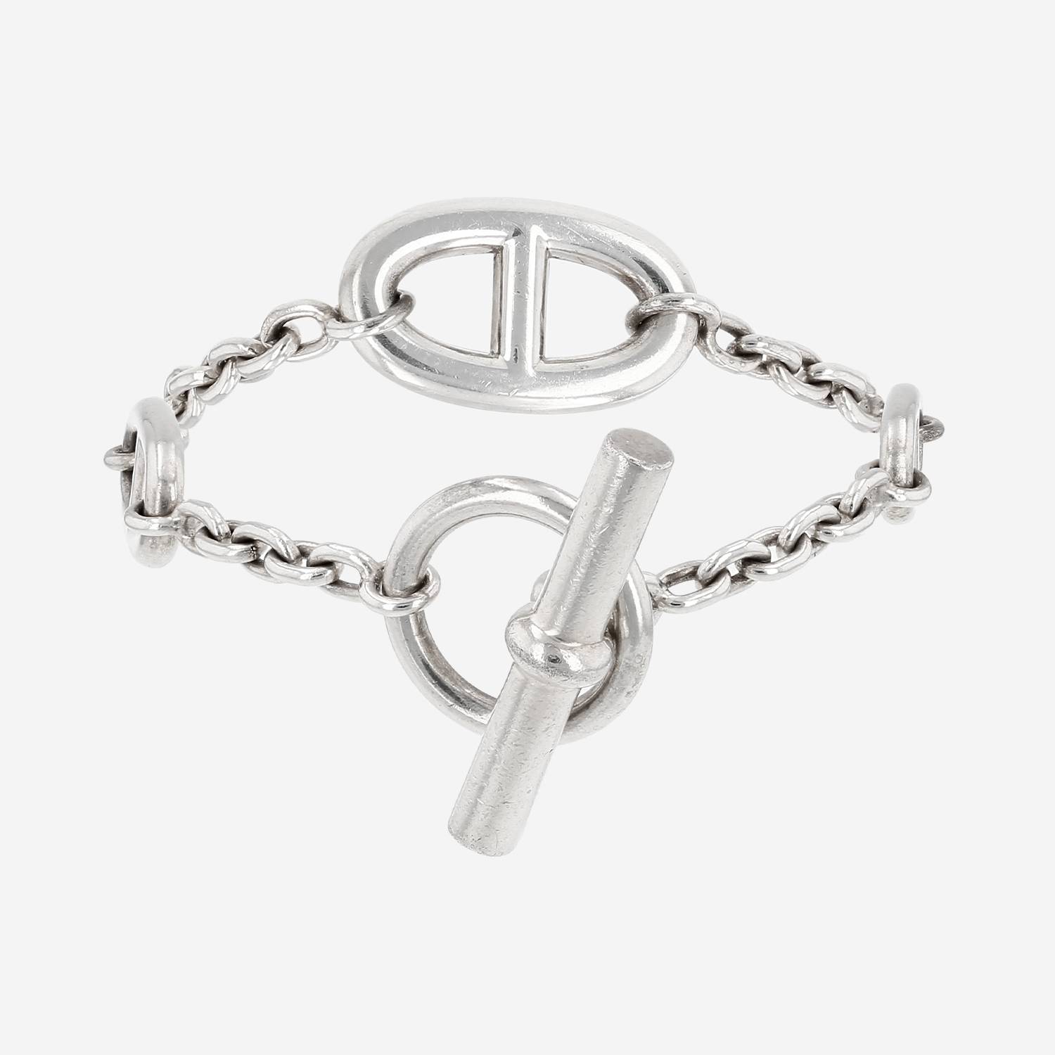 Hermès Farandole bracelet in silver, composed of an alternating of beautiful oval hemstitched links in silver, hold by forcat chain.