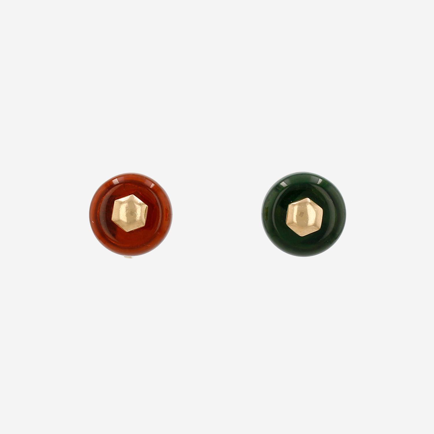 Marina B earrings in yellow gold, in rock crystal, citrine, green beryl, peridot and topaz, composed of one geometric setting in yellow gold, decorated with one elegant round removable sleeve in rock crystal, in citrine, in green beryl, in peridot and in topaz.