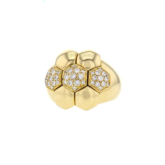 Significant ring in yellow gold diamonds, made of one wonderful geometric flower, decorated with 3 lovely octogonal patterns completely paved with brilliant cut diamonds.
