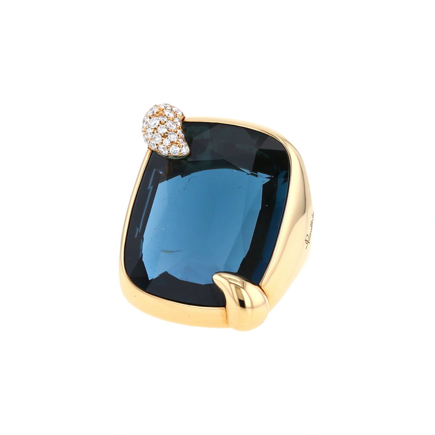 Pomellato Ritratto large model ring in pink gold, "Blue London" topaz and diamonds Collector Square Ref: 40 33 44