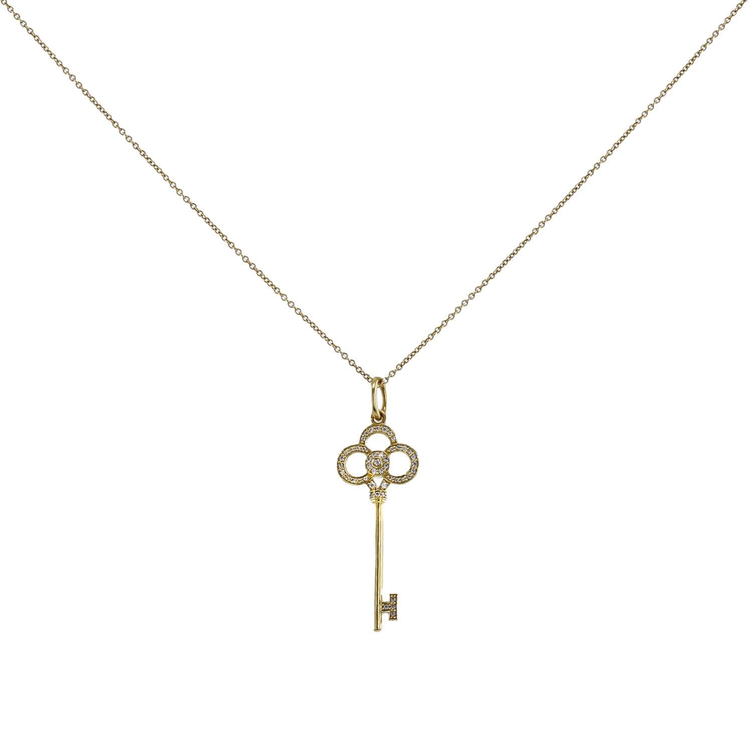 Tiffany & Co Clé Couronne pendant in yellow gold and diamonds, including one delicate hemstitched key carefully set with a total of 0.11 carat of brilliant cut diamonds, hold by one thin in yellow gold chain.