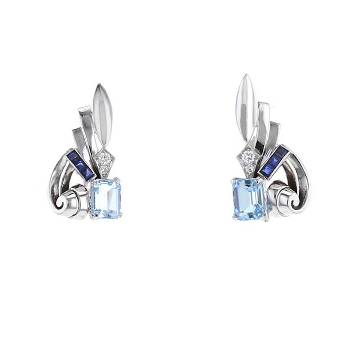 Tiffany & Co Art Déco earrings in 14k white gold, aquamarine and sapphires and in diamonds Collector Square Ref: 35 14 72