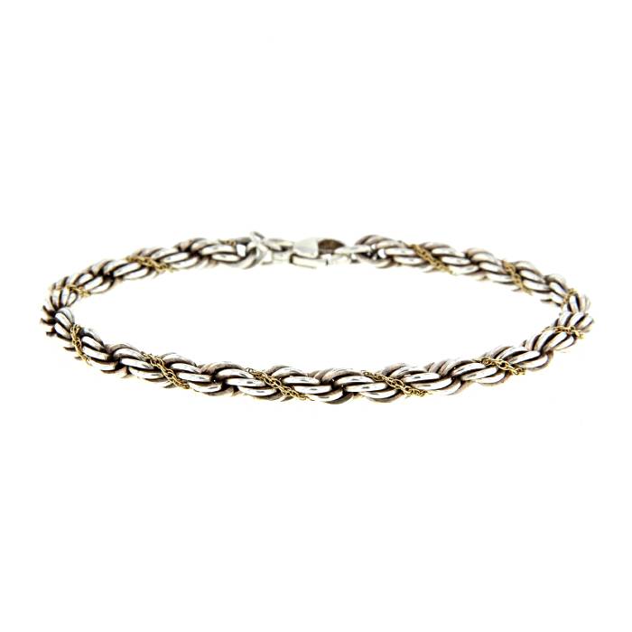 Very elegant flexible bracelet in silver yellow gold, composed of one lovely twist in silver, enhanced with one delicate chain yellow gold.