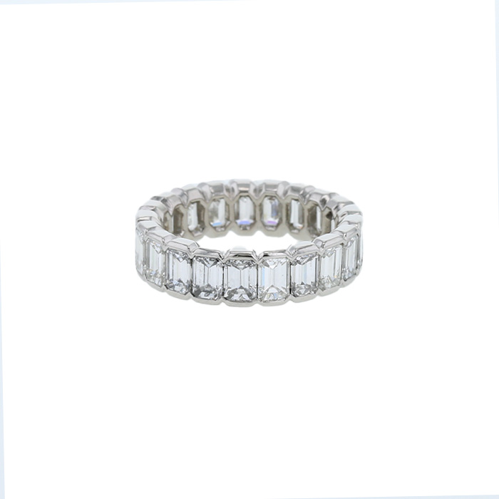 Vintage wedding ring in platinium and diamonds, composed of one ring in platinium elegantly set with of emerald-cut diamonds about 6 carats.