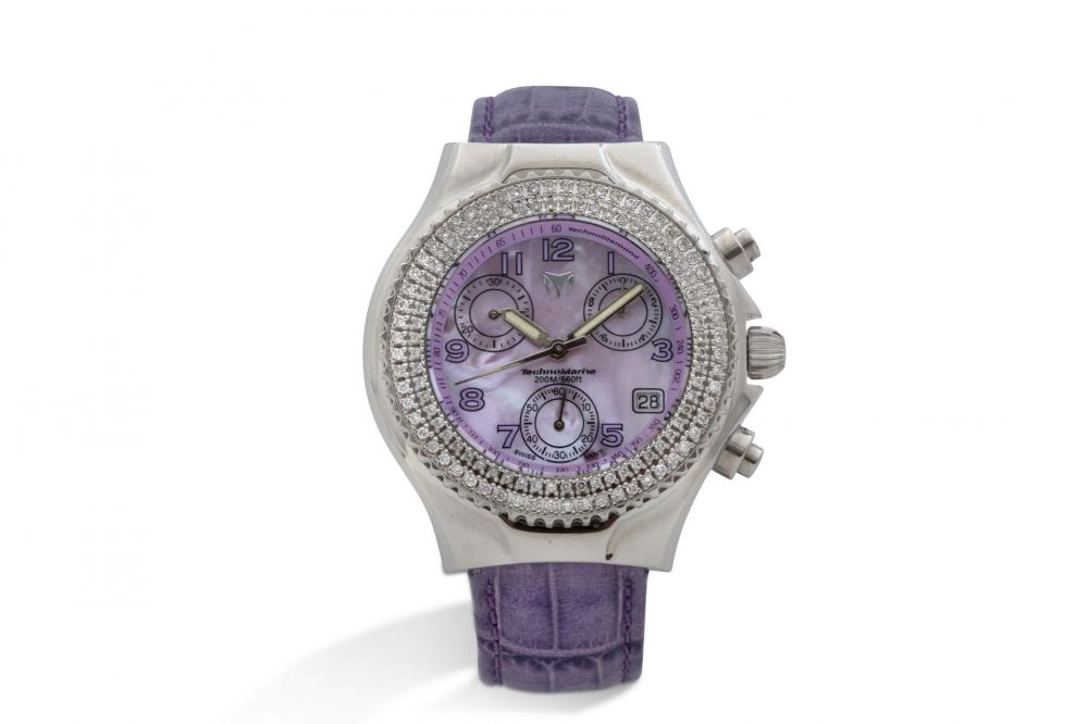 Log in to consult the next resultsRead our expert's descriptionTECHNOMARINE. A STAINLESS STEEL, DIAMOND AND MOTHER-OF-PEARL CHRONOGRAH WRISTWATCH