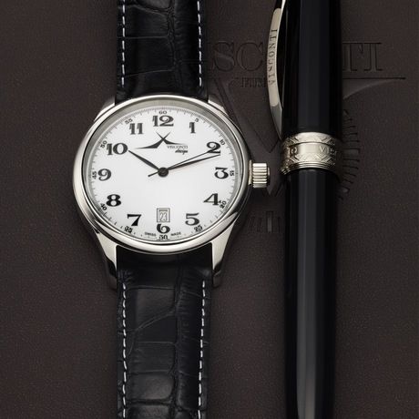 Description : VISCONTI REF. WO99 QUARTZ STEEL.Visconti, Swiss, Ref. WO99..Fine, water-resistant, stainless steel quartz wristwatch with date. Accompanied by the original fitted box, fine.Visconti leather wallet, ball pen and booklet.Read our expert's descriptionVisconti Ref. WO99