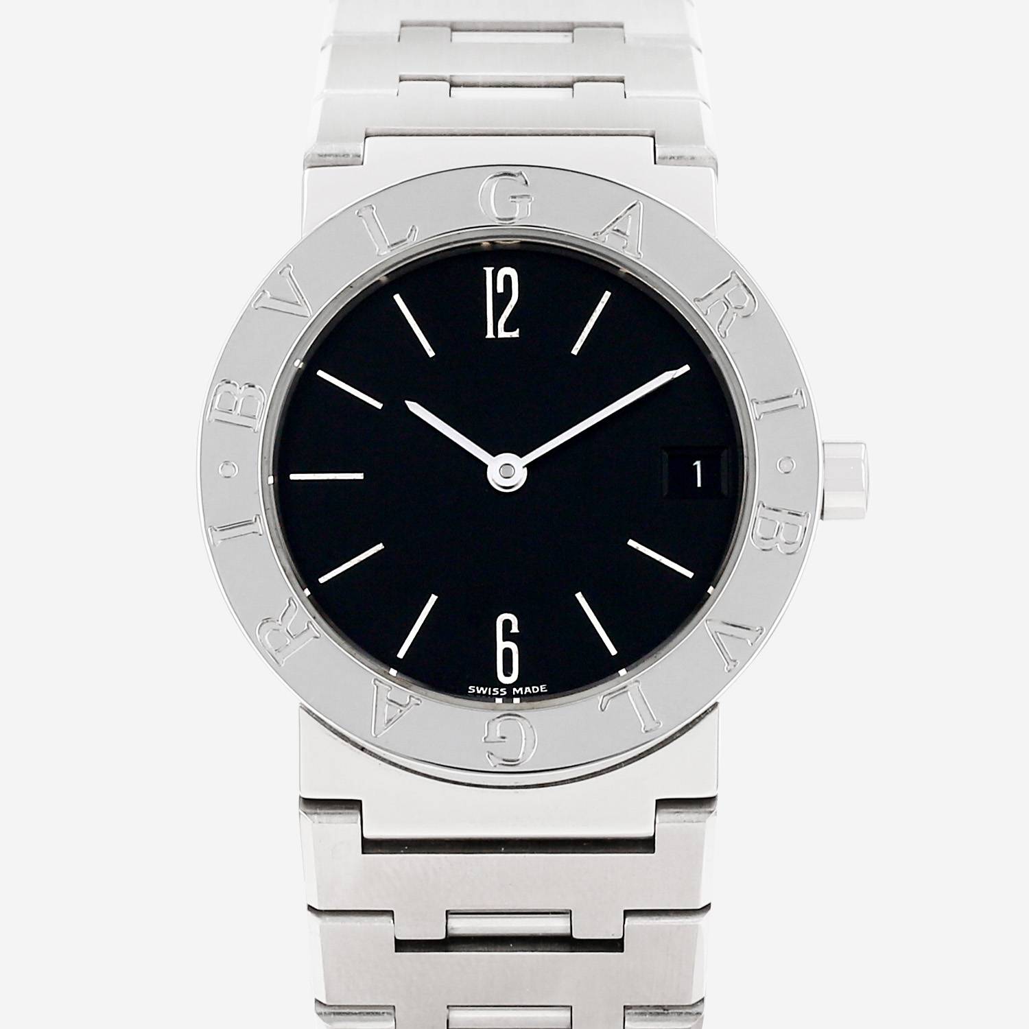 Stainless steel Bulgari Bulgari wristwatch. Round case in stainless steel, clipped caseback, Bvlgari signed bezel, crown.