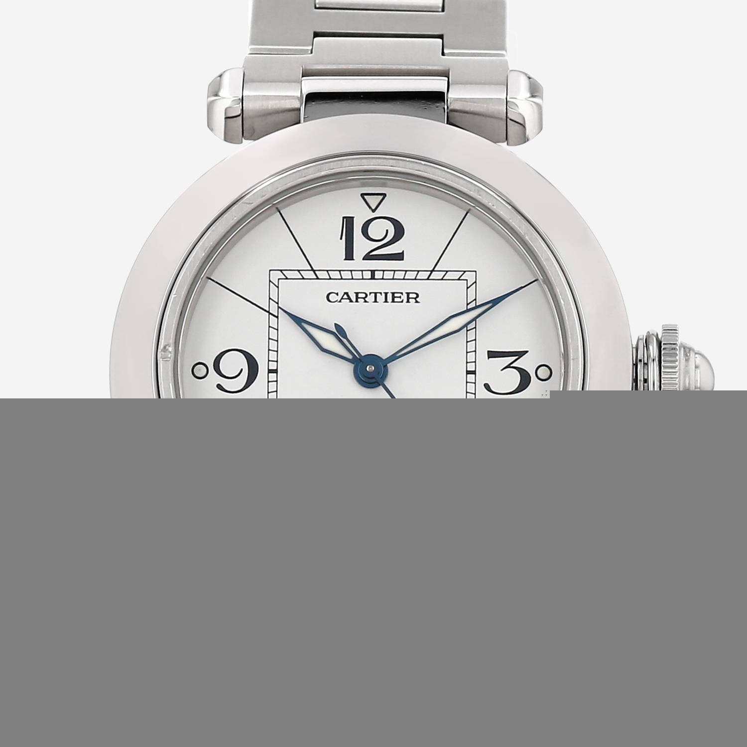 Stainless steel Cartier Pasha wristwatch. Round case in stainless steel, screwed caseback, screwed crown protection.