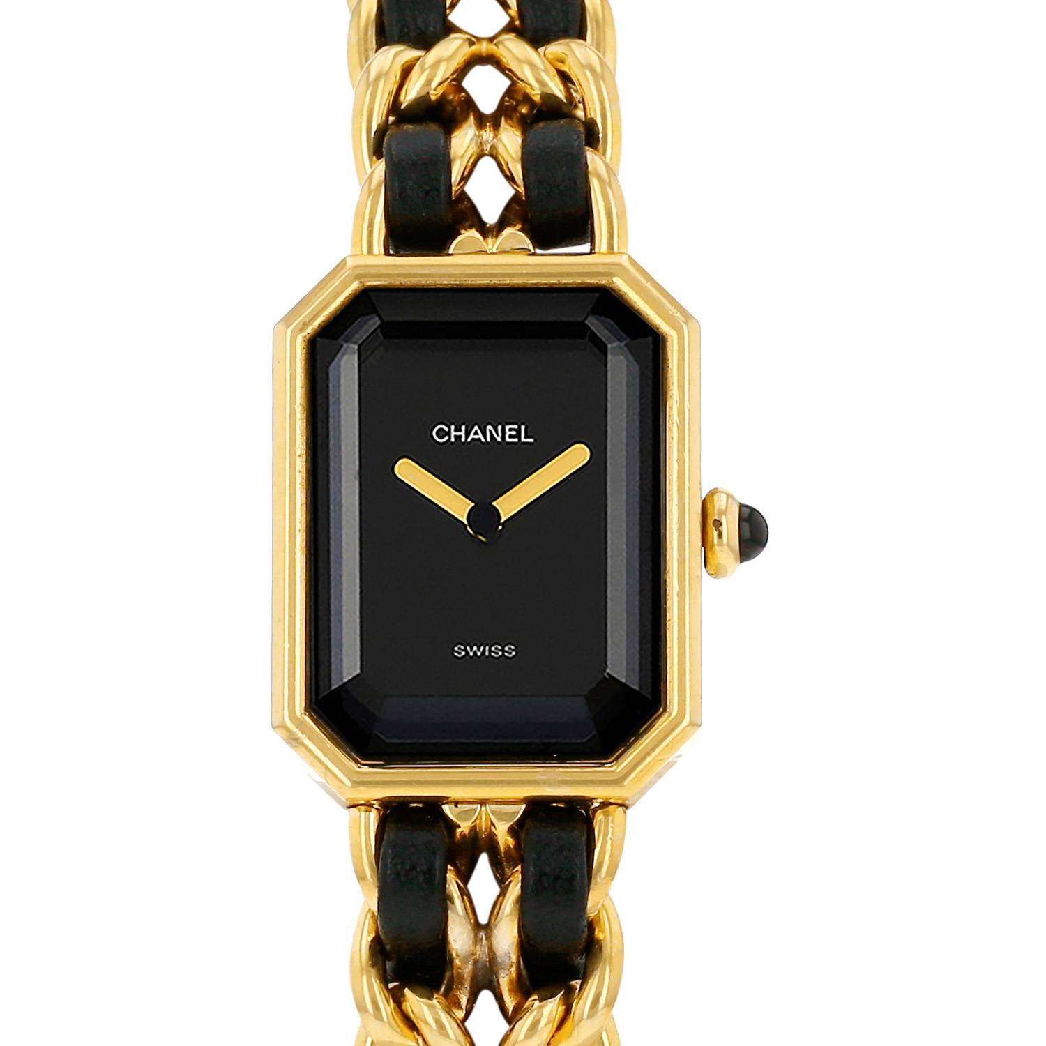 Gold plated Chanel Première wristwatch size L. Octogonal case in gold plated with faceted glass, clipped caseback, crown set with a black sapphire cabochon.