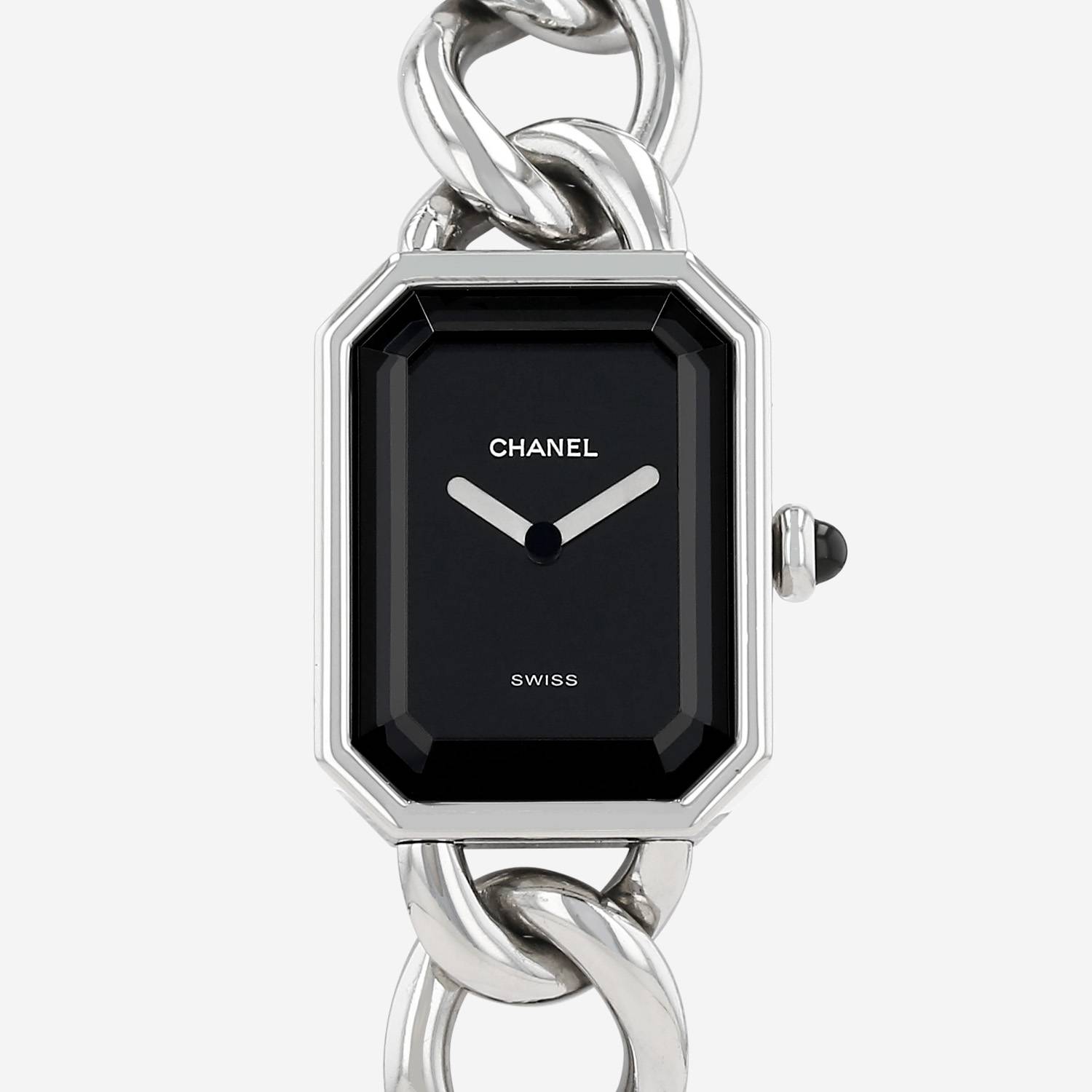 Stainless steel Chanel Première wristwatch size XL. Octogonal case in stainless steel with faceted glass, clipped caseback, crown set with a black sapphire cabochon.