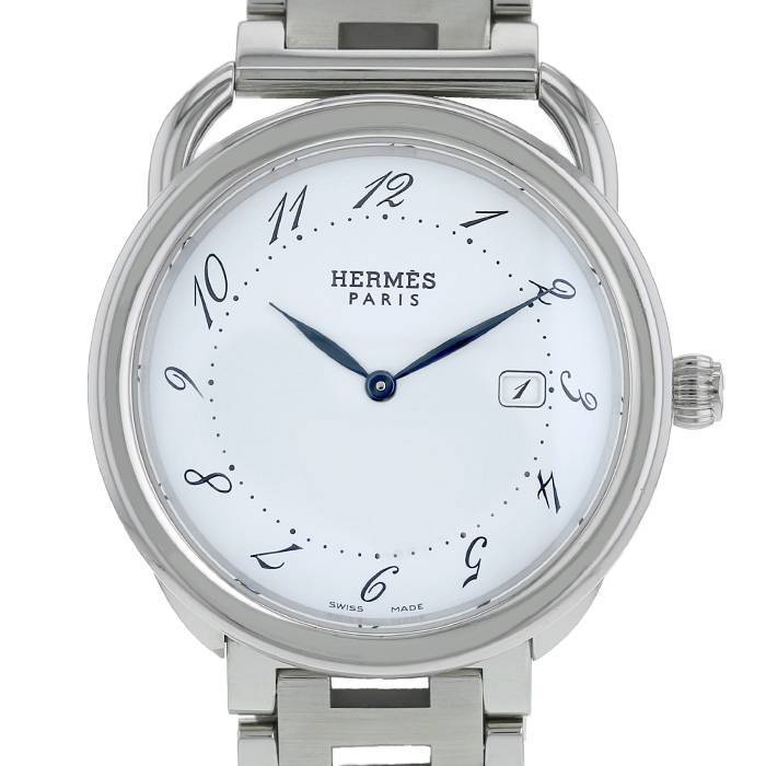Stainless steel Hermès Arceau wristwatch. Round case in stainless steel, screwed caseback, canned crown.