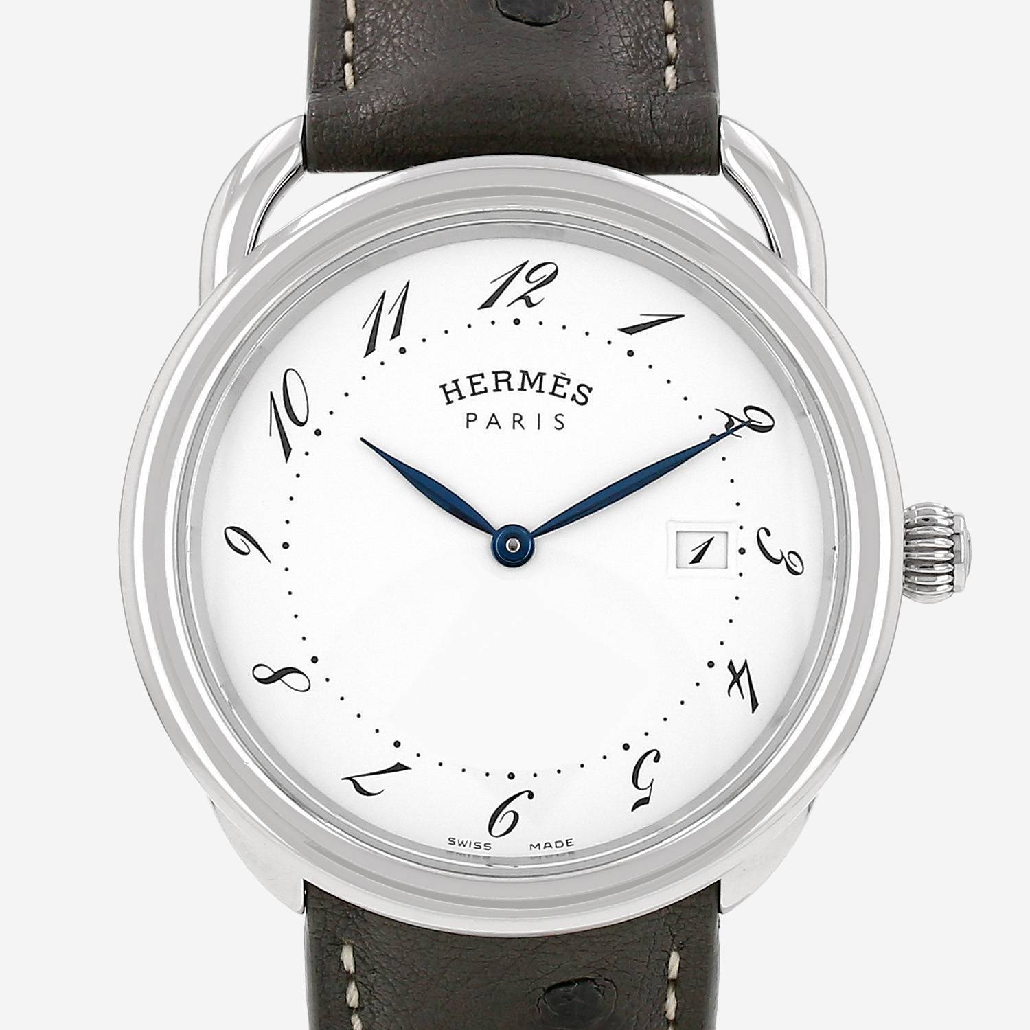 Stainless steel Hermès Arceau wristwatch. Round case in stainless steel, screwed caseback, canned crown.