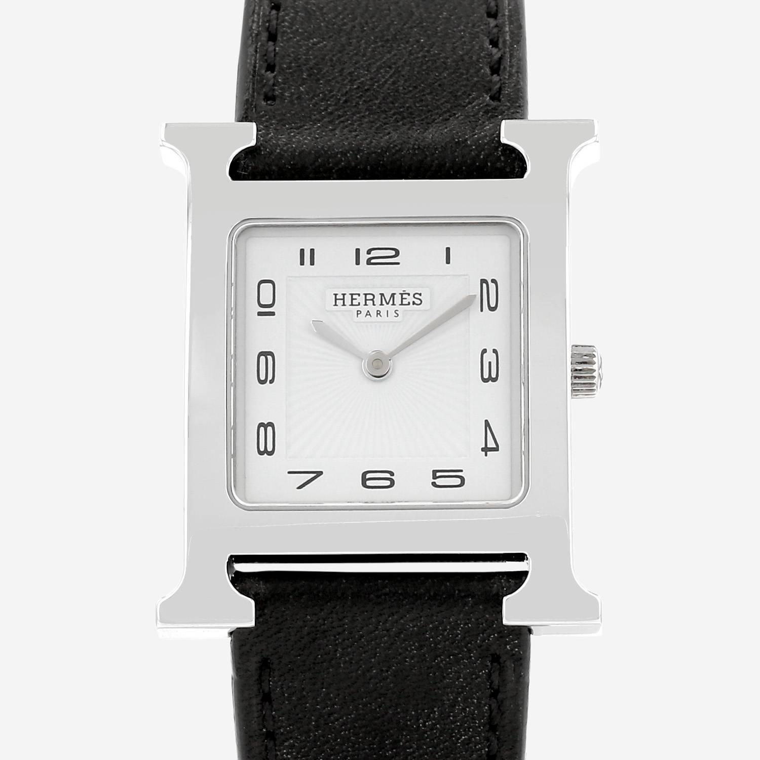 Stainless steel Hermès Heure H wristwatch. H case in stainless steel, screwed caseback, canned crown.
