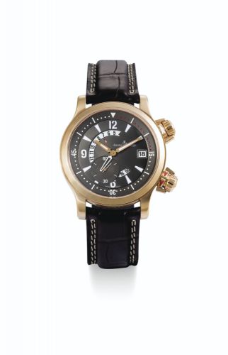 Description : automatic jeweled nickel lever movement . black dial, small constant seconds, rotating calibrated flange, apertures for second time zone and date . 18k pink gold case, screw-down engraved case back secured by 4 screws . case, dial and movement signed . with a 18k pink gold Jaeger-LeCoultre buckle diameter 41.5 mmRead our expert's descriptionJaeger-LeCoultre.A FINE PINK GOLD AUTOMATIC DUAL TIME WRISTWATCH WITH DATE AND 24-HOUR INDICATION MASTER COMPRESSOR DUALMATIC CIRCA 2012