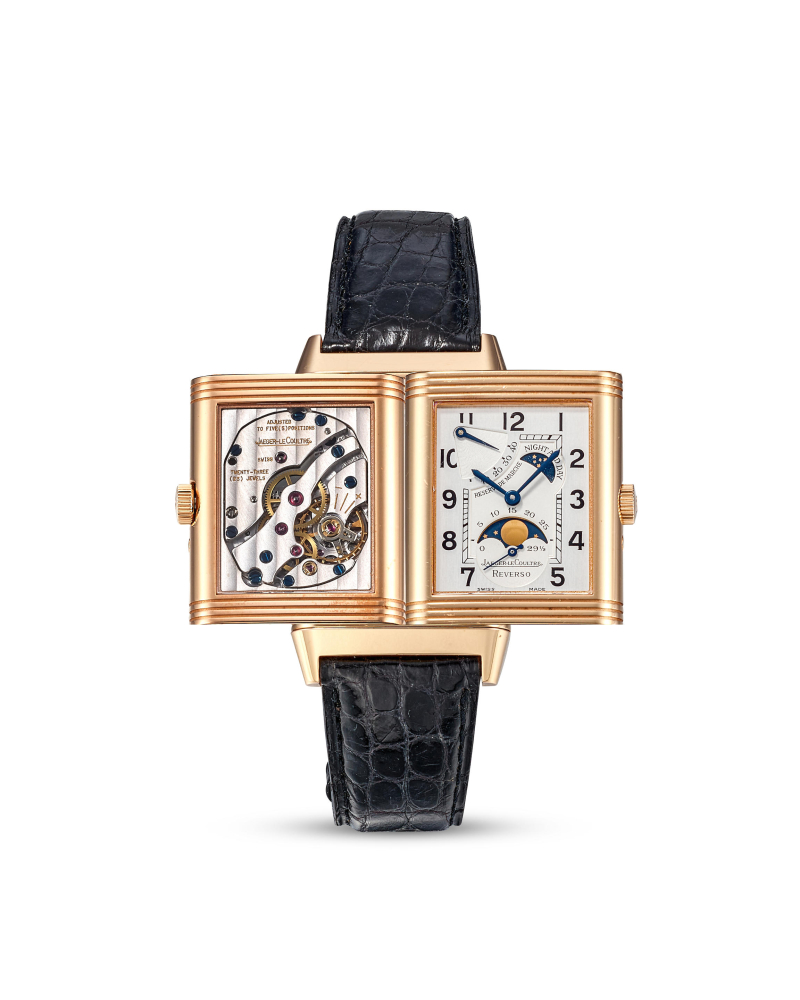 Log in to consult the next resultsRead our expert's descriptionJAEGER-LECOULTRE. A LIMITED EDITION 18K PINK GOLD AUTOMATIC DUAL TIME REVERSIBLE WRISTWATCH WITH NIGHT AND DAY INDICATION