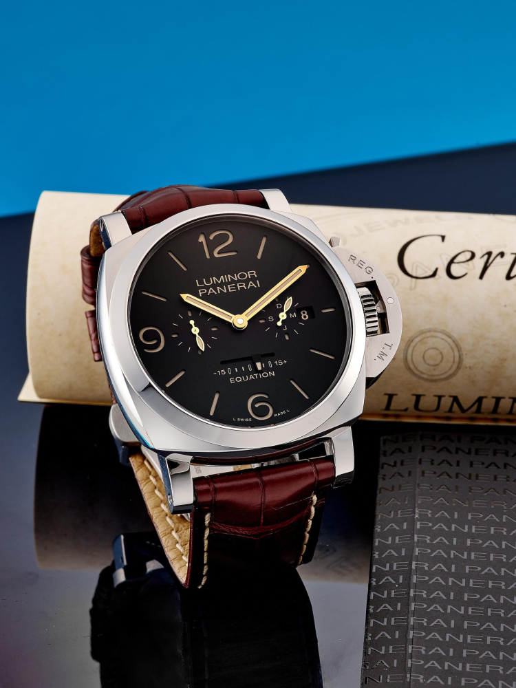 Reference PAM 00601 Luminor 1950 Equations of Time 8 Days | A limited edition stainless steel automatic perpetual calendar wristwatch with equation of time and power reserve indication, Circa 2015