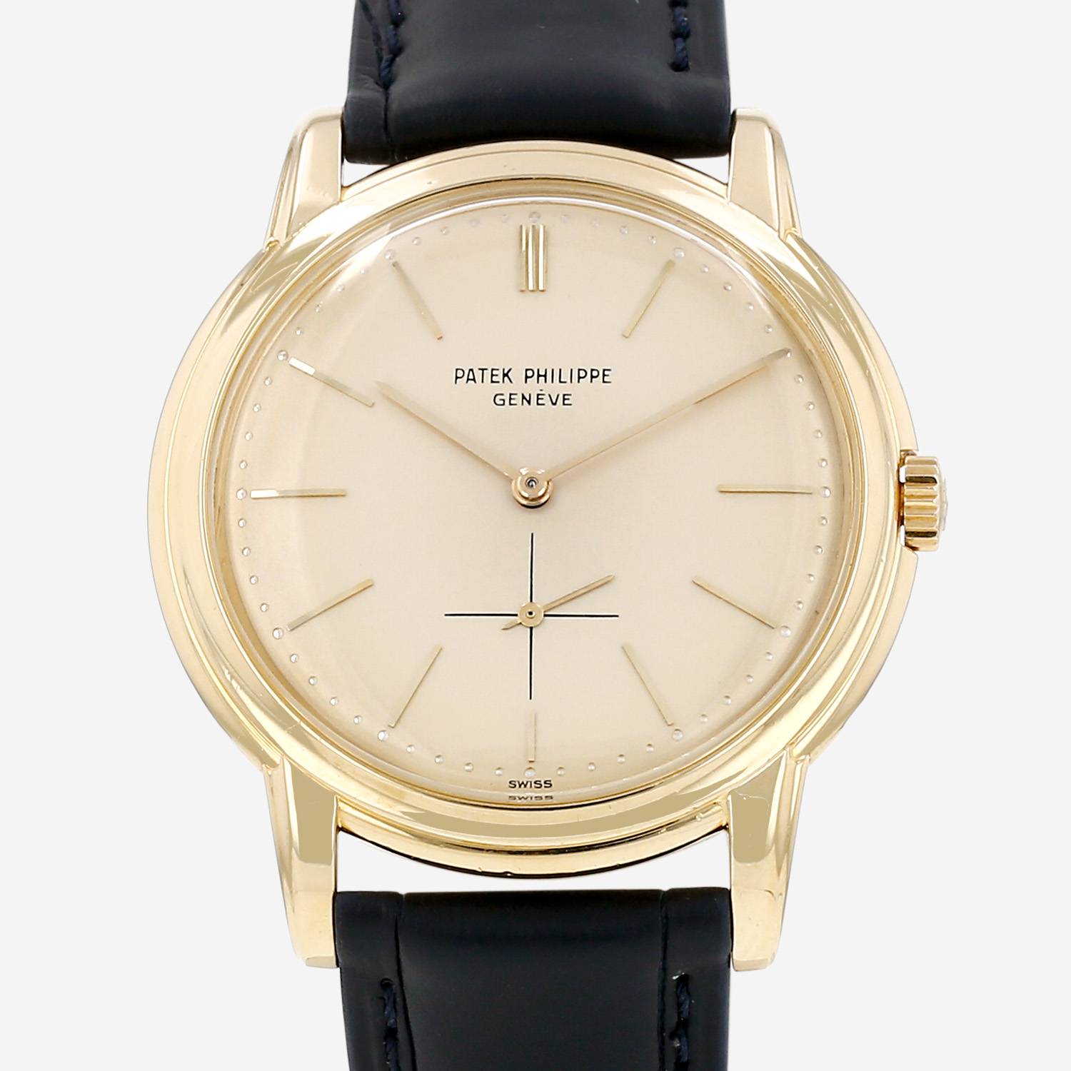 Yellow gold Patek Philippe Calatrava wristwatch. Round case in yellow gold with double godron, screwed caseback, canned crown.