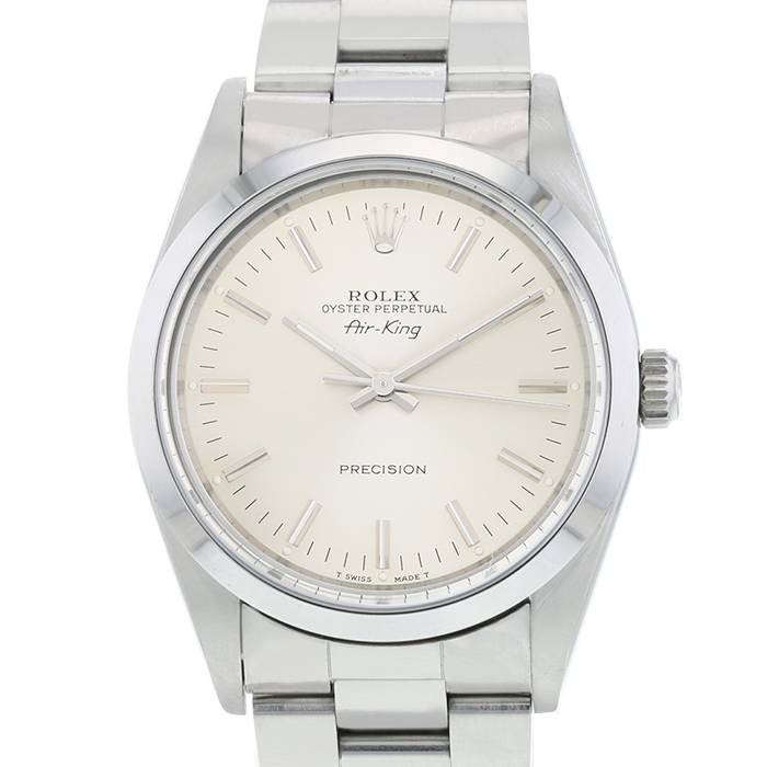 Stainless steel Rolex Air King wristwatch. Round case in stainless steel, screwed caseback, stainless steel smooth bezel, screw-down crown.