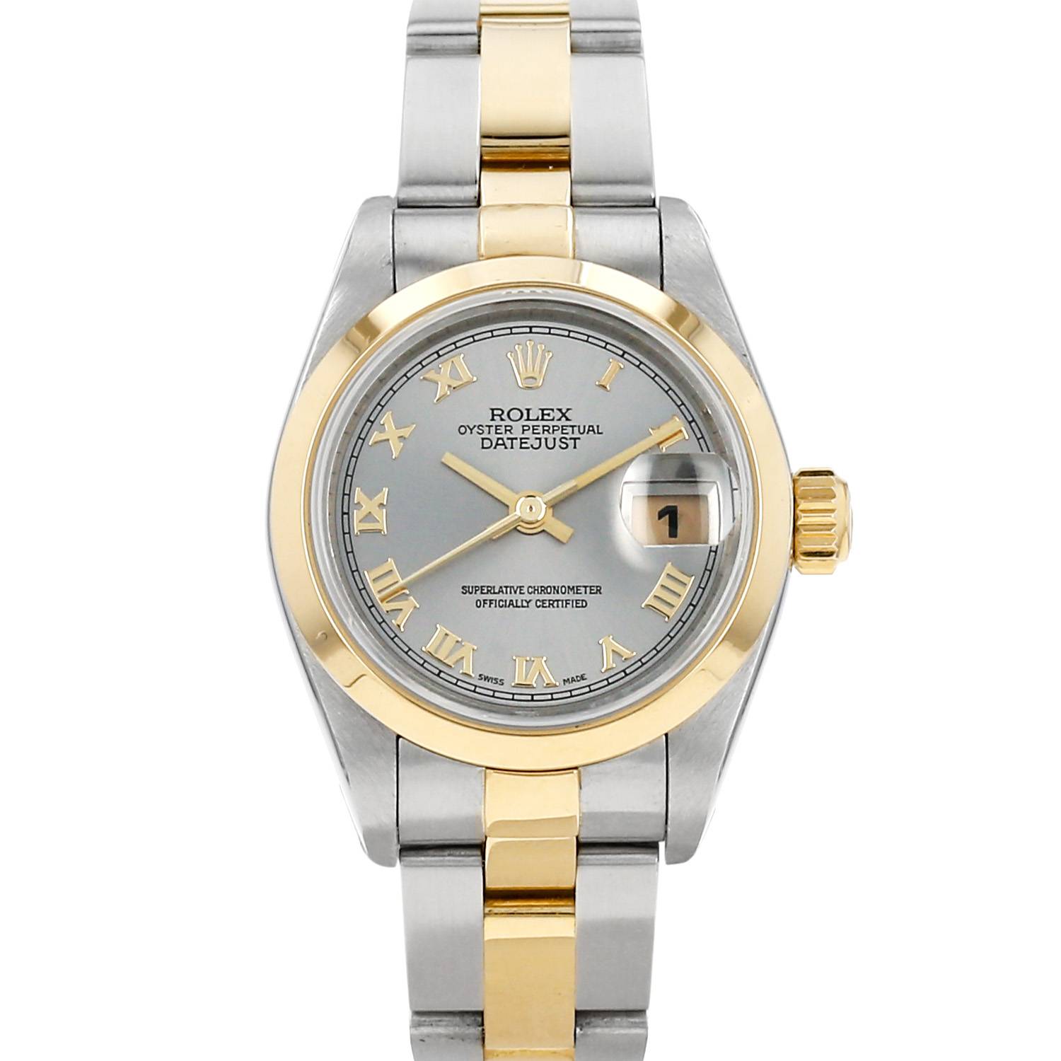 Gold and stainless steel Rolex Datejust Lady wristwatch. Round case in gold and stainless steel, screwed caseback, yellow gold smooth bezel, screw-down crown.