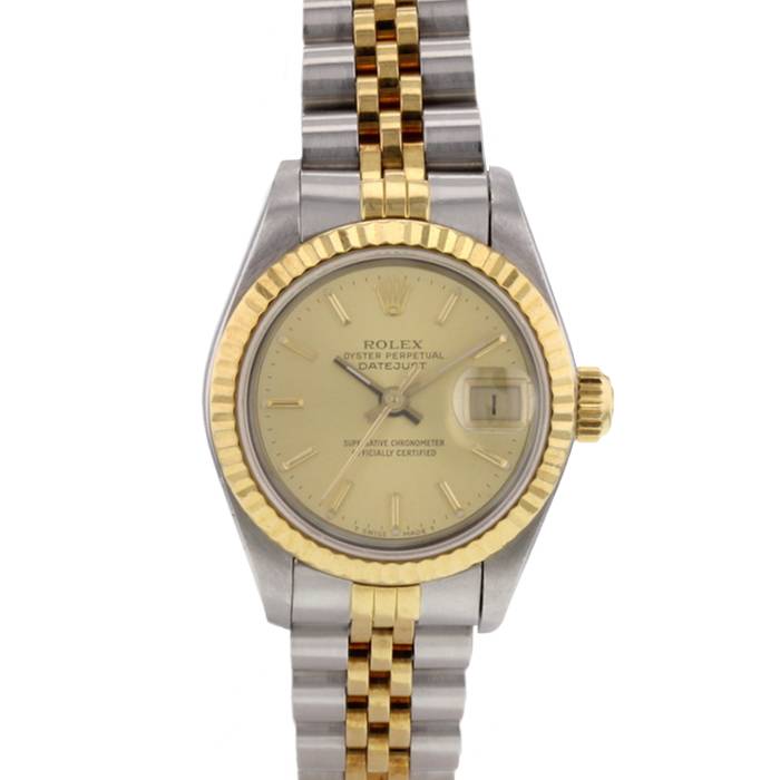 - Stainless steel and gold jubilé wrislet, folding clasp in stainless steel signed Rolex.
