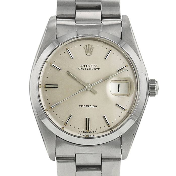 Stainless steel Rolex Oyster Date Precision wristwatch. Round case in stainless steel, smooth bezel, screw-down crown.