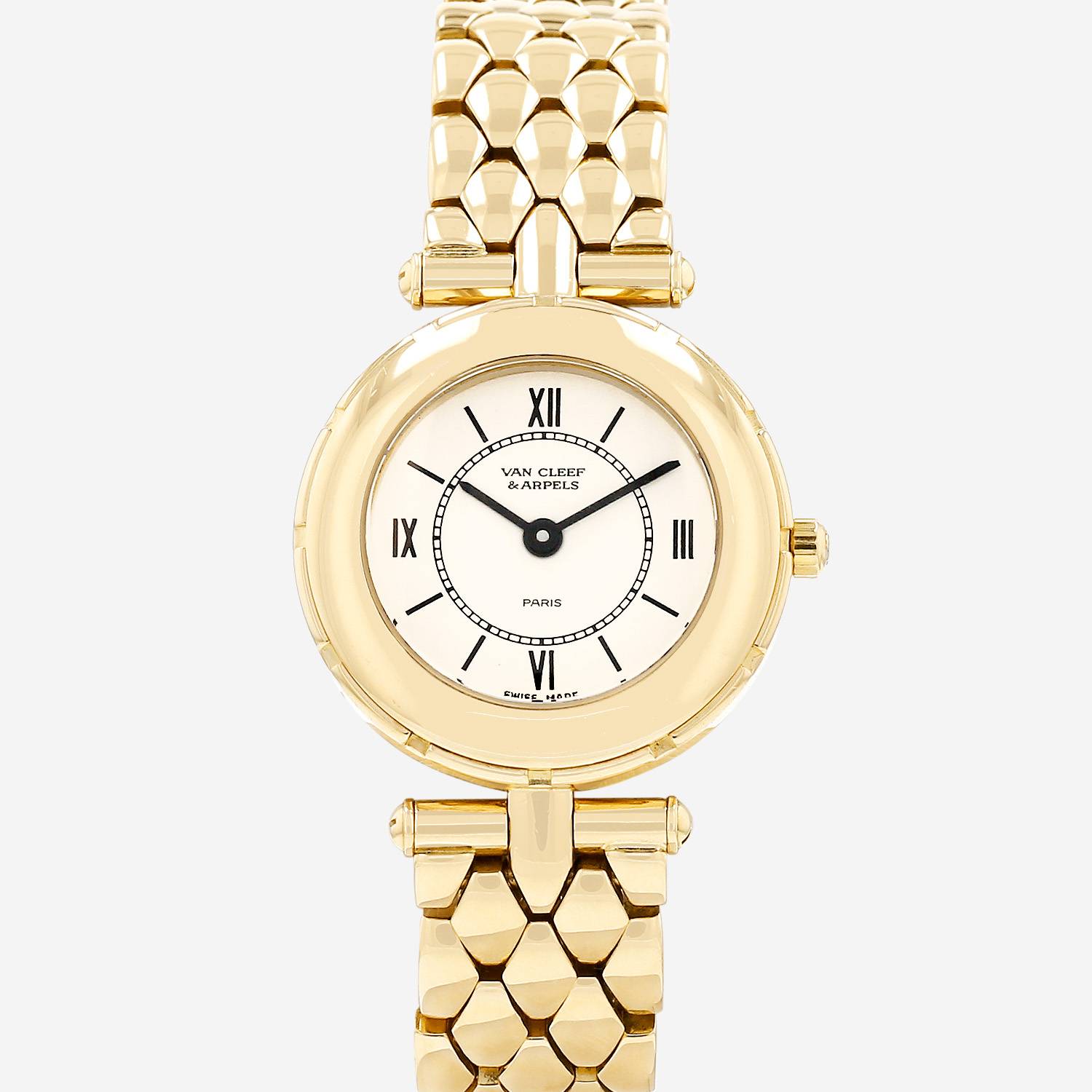 Yellow gold Van Cleef & Arpels La Collection wristwatch. Round case in yellow gold with godron, screwed caseback, canned crown.