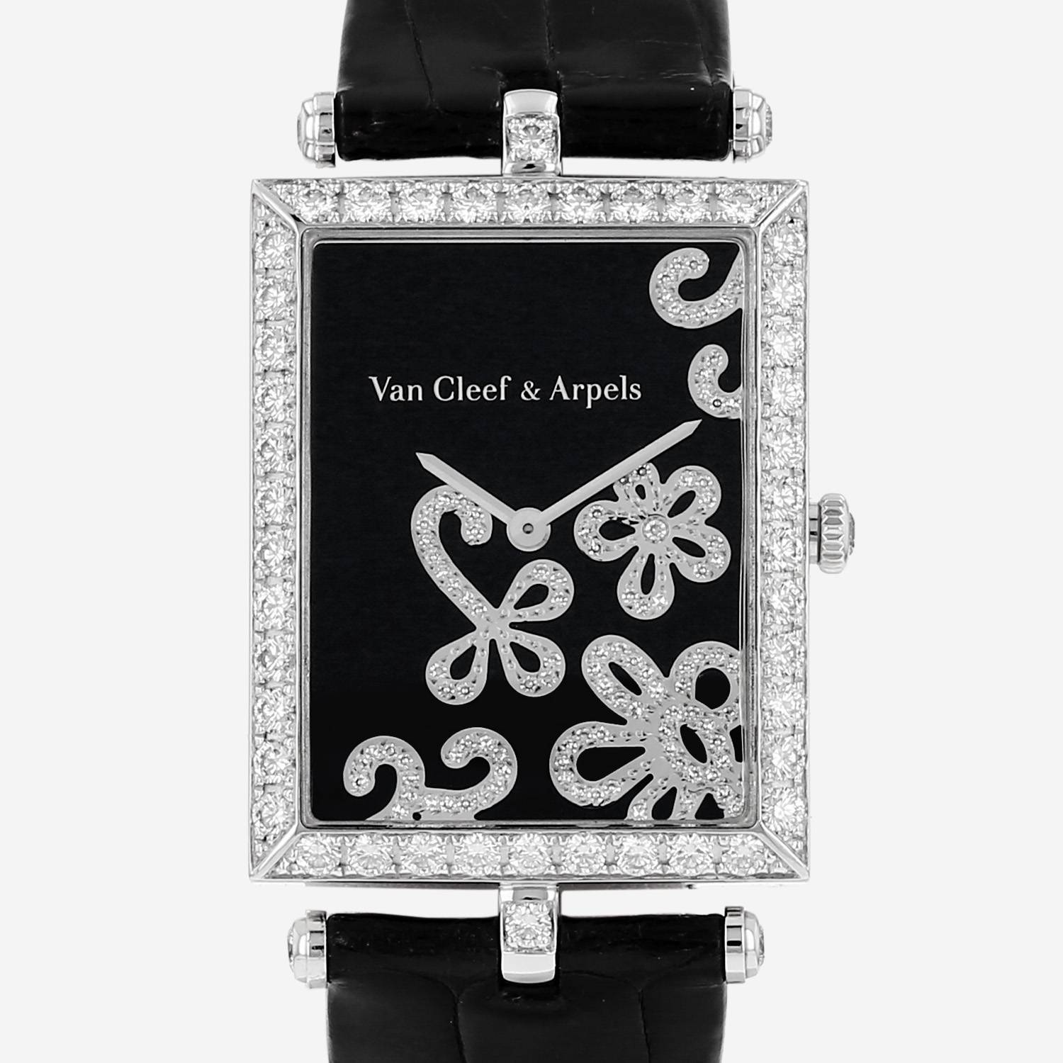 White gold and diamonds Van Cleef & Arpels Lady Arpels wristwatch. Rectangular case in white gold with diamonds, screwed caseback, canned crown set with a diamond cabochon.