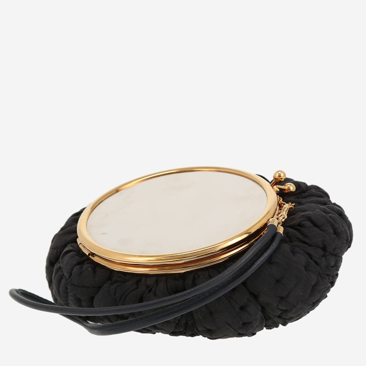Original bolso joya Balenciaga de lona acolchada azul oscuro, adorno en metal dorado, una muñequera de cuero azul para llevar en la mano o en la muñeca.