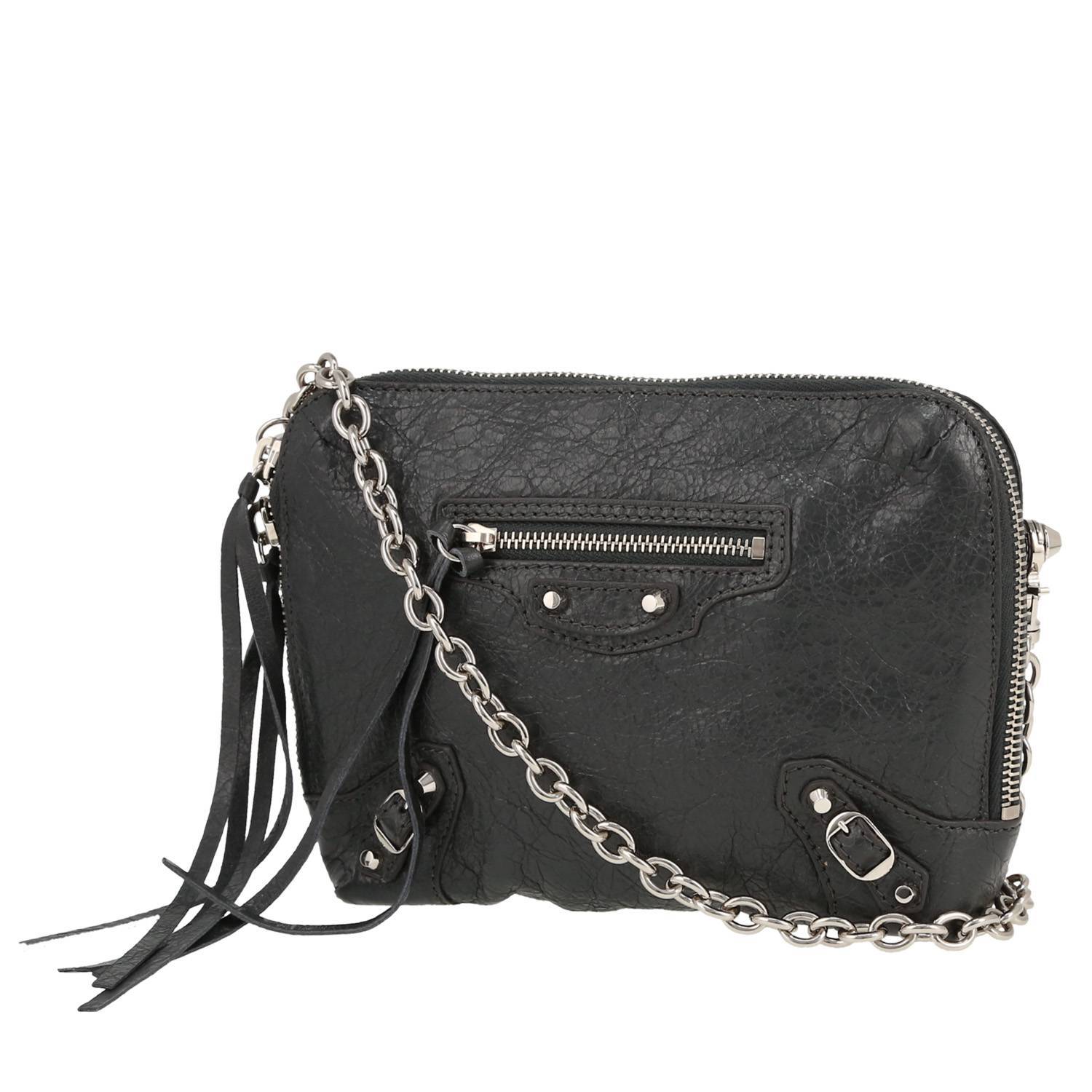 Encantador bolso bandolera Balenciaga, adorno en metal plateado, una asa en cadena de metal plateado para llevar al hombro o cruzado.