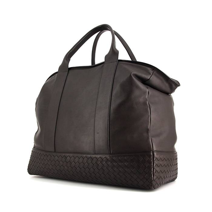 Bolsa de viaje Bottega Veneta en cuero marrón oscuro y cuero trenzado marrón oscuro Ref Collector Square: 33 49 82