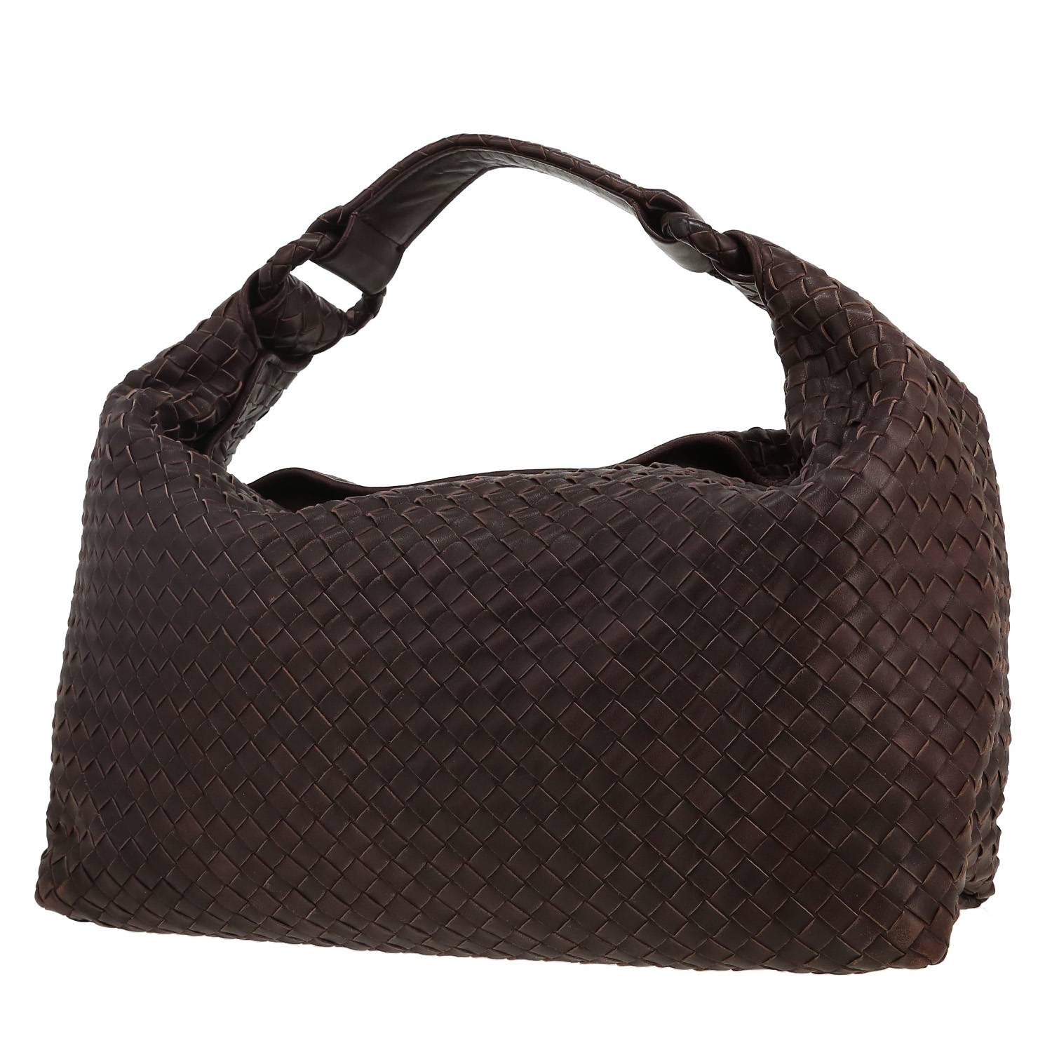 Magnífico bolso de mano Bottega Veneta de cuero intrecciato color berenjena, adorno en metal negro, una asa de cuero intrecciato color berenjena para llevar en la mano o al hombro.