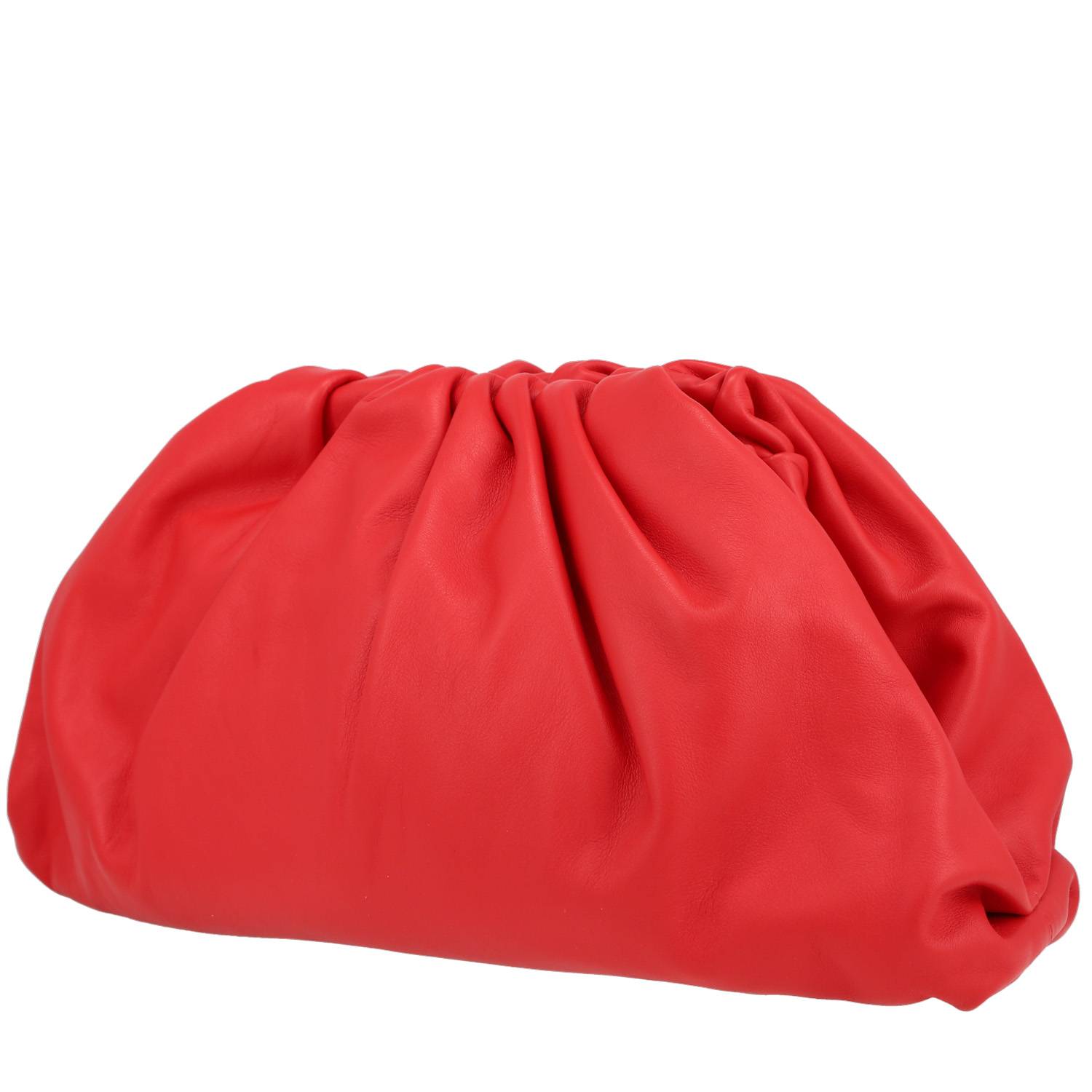 Magnífico bolso/bolsito Bottega Veneta Pouch de cuero rojo, adorno en metal plateado para llevar en la mano.