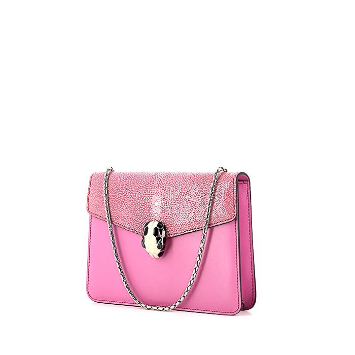 Bolso bandolera Bulgari Serpenti en cuero rosa caramelo y piel de galuchat rosa Ref Collector Square: 34 19 11