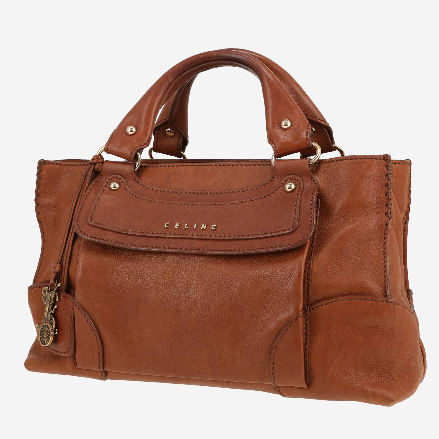 Magnífico bolso de mano Celine Boogie de cuero marrón, adorno en metal dorado, doble asa de cuero marrón para llevar en la mano.