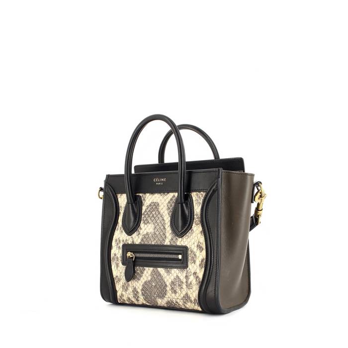 Celine bolso Nano en cuero negro y piel de pitón Ref Collector Square: 28 88 10
