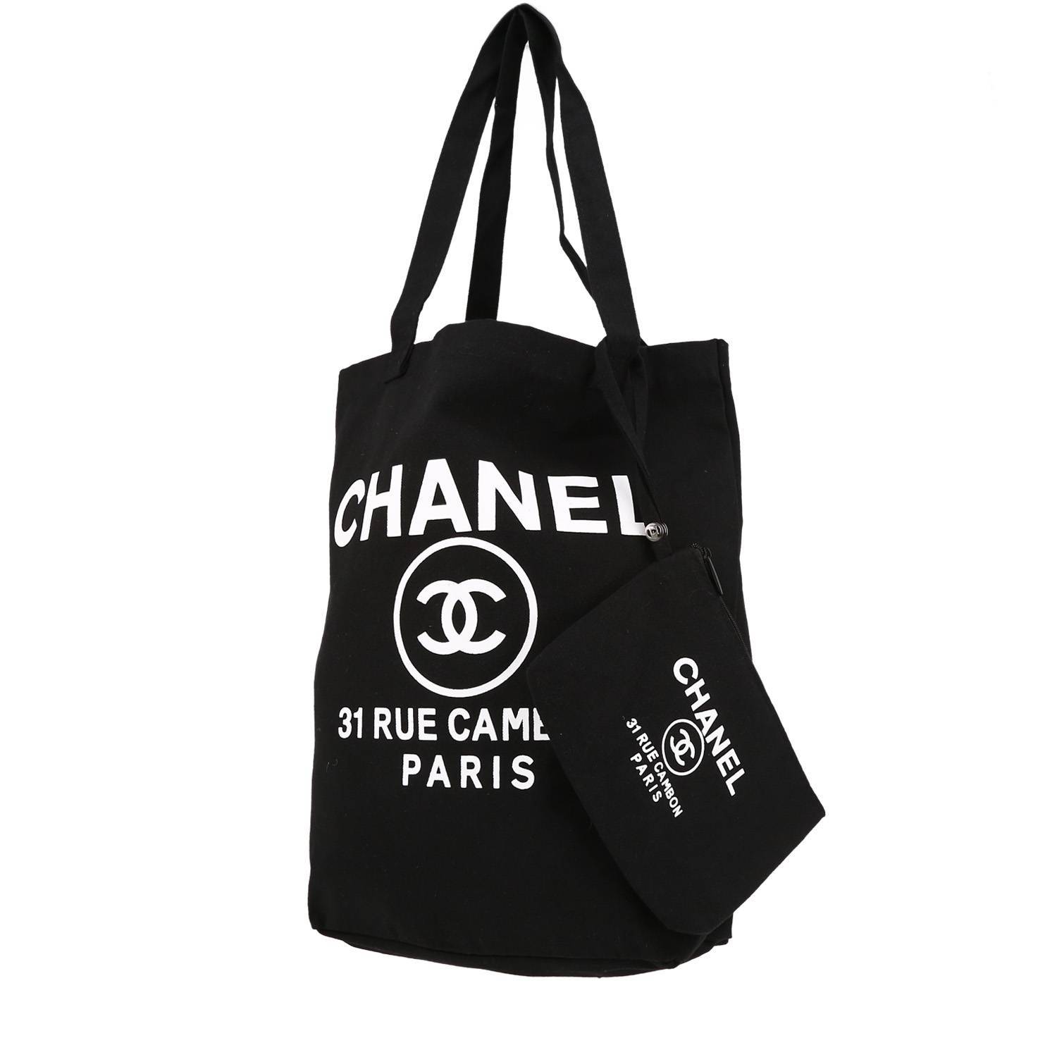 Bonito bolso Cabás Chanel de lona negro, doble asa de lona negra.