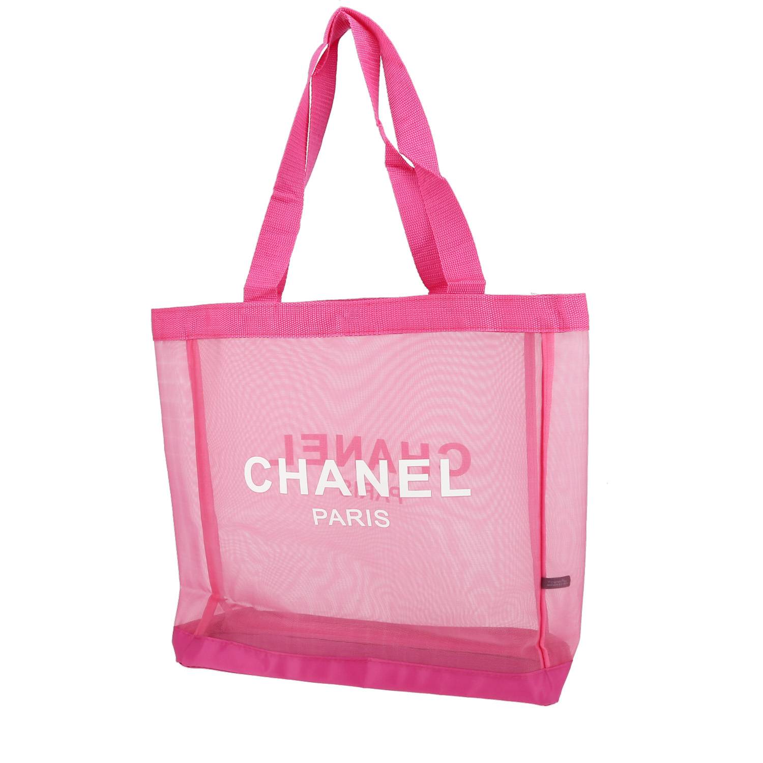 Bonito bolso Cabás Chanel de lona rosa, doble asa de lona rosa para llevar en la mano o al hombro.