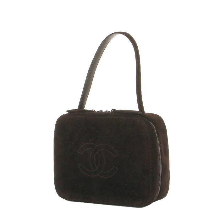 Muy bonito bolso caja de ante marrón, asa para llevar en la mano.