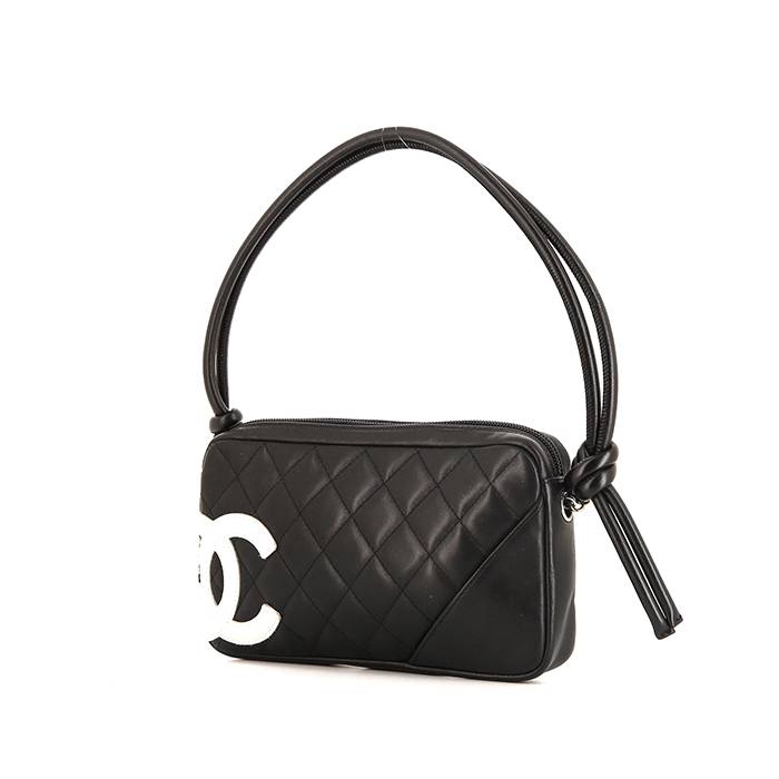 Bolso para llevar al hombro o en la mano Chanel Cambon en cuero acolchado negro y blanco Ref Collector Square: 36 15 65
